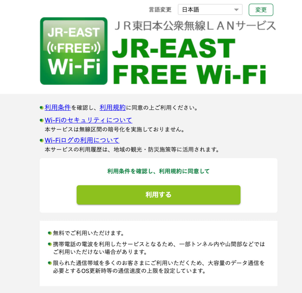 今回の成田エクスプレスのリモートワークイベントでは、成田エクスプレスのフリーWi-Fi(JR-EAST FREE Wi-Fi)も利用できるとのことでした。