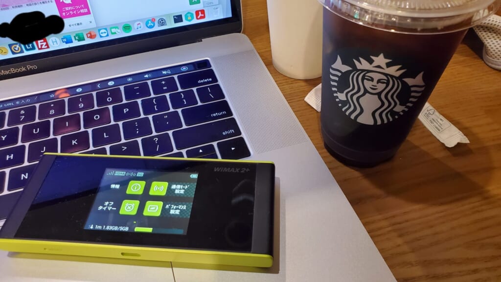 写真は、スターバックスで撮ったものですが、楽天モバイルのSIMカードをモバイルWi-Fiルーターに挿入することで、インターネット回線が利用できます。