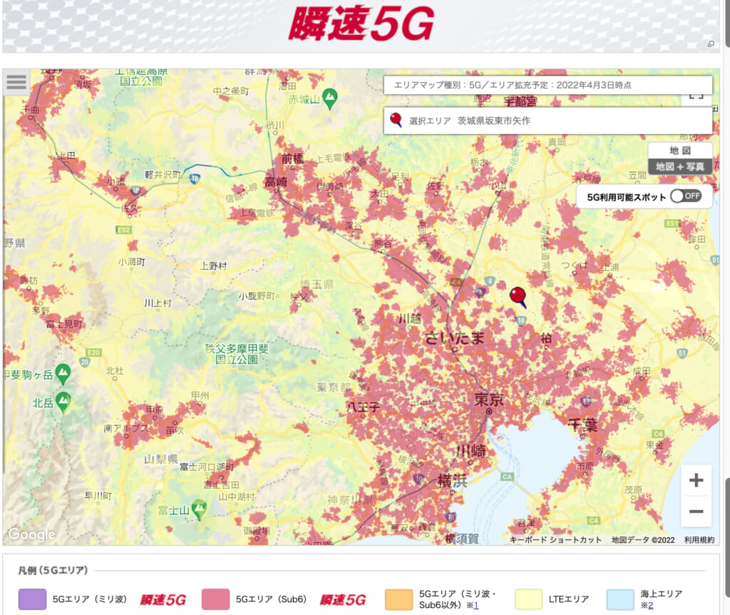 一方、NTTドコモの5G対応エリアは以上の通りです。
