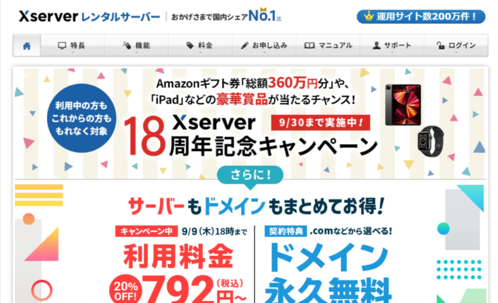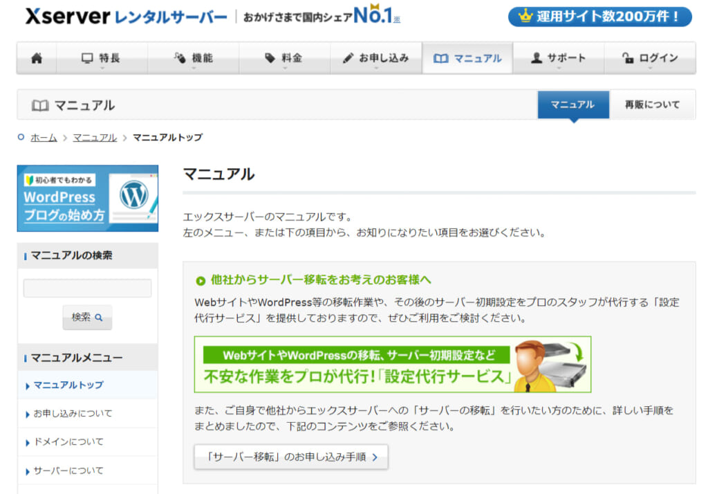 エックスサーバーにて、既に200万以上ものサイトが展開されています。エックスサーバーは国内シェアNo.1を獲得しています。
