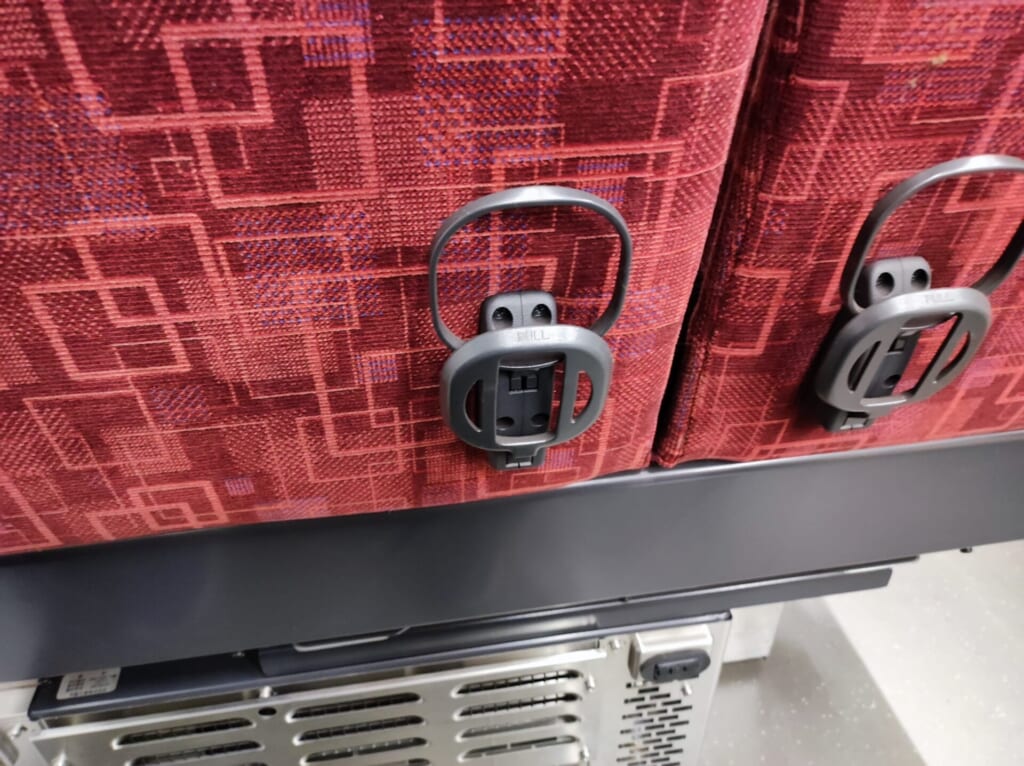 そのため、PC作業をする際には、膝にPCを置いて作業するしかありませんが、座席間の感覚が比較的狭いため、かなり厳しいと思われます。おそらく、キーボードを打つのは若干難しいと思います。