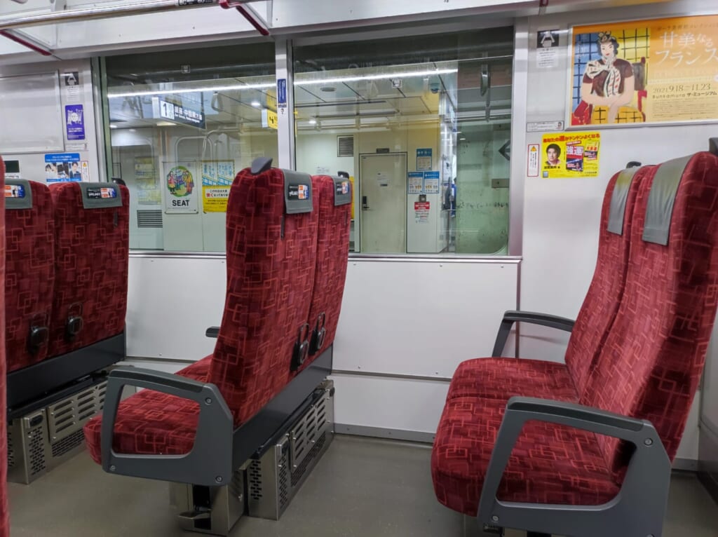座り心地としては、1時間弱の移動時間なら、快適に過ごせるような感じです。さすがに新幹線の快適さとは行きませんが、通常の東武線・東京メトロのロングシートに比べたらかなり楽と思います。