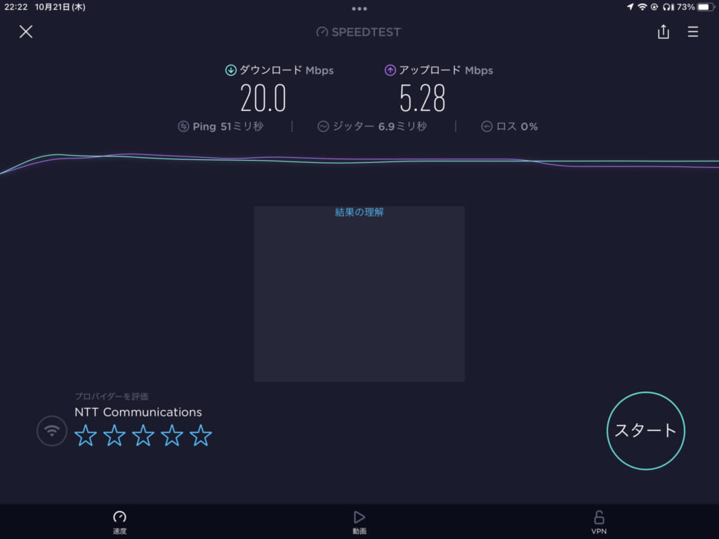 スピードテストをしてみましたが、まあまあの数値です。